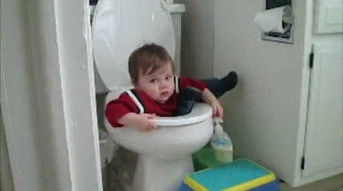 โ Your baby is interested in parents going to the bathroom, for example, he wants to go to the bathroom with his parents.